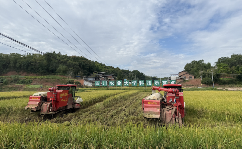 10月18日上午,眉山市仁寿县钟祥镇龙桥社区30亩“稻-菜”轮作科技示范田进入收获期。记者在现场看到,两台联合收割机正在田间有序作业,种植户忙着协助收割,四川农业大学技术团队同步开展测产,初步数据显示,该示范田水稻亩产超550公斤,较传统种植模式实现增产。