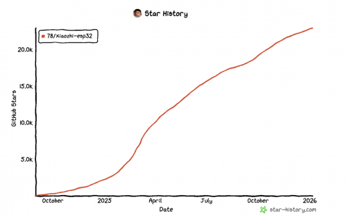 而核心代码开源,成为小智AI发展的关键转折点。在黄冠看来,技术不应有边界,创新需要集体智慧碰撞。2024年底,小智AI项目登陆GitHub,开放语音交互模块、情感计算框架及场景应用代码。这一举措迅速引发全球开发者的热烈响应,首日即引发“星标”狂潮,短短几个月内,项目星标数突破1万,登上GitHub Trending全球榜首,超过五万开发者参与共创,全球30多万台设备接入小智AI。如今接入硬件设备突破100万台,更是这一开放共创模式强大生命力的有力证明。